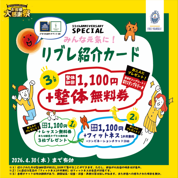 11周年記念クーポンやフィットネス入会キャンペーンも同時開催中!