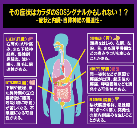 肩こりや腰痛など比較的軽微な症状に関しても、実は内臓の影響を受けていることが医学的にわかっています。
