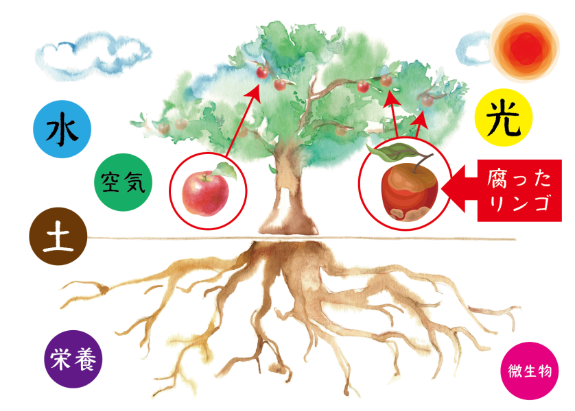 リンゴの木で例えた場合、通常であれば実る果実はほとんど同じように育つようですが、同じように育てても中にはうまく育たず状態の悪いリンゴが多く育つ場合があります。
